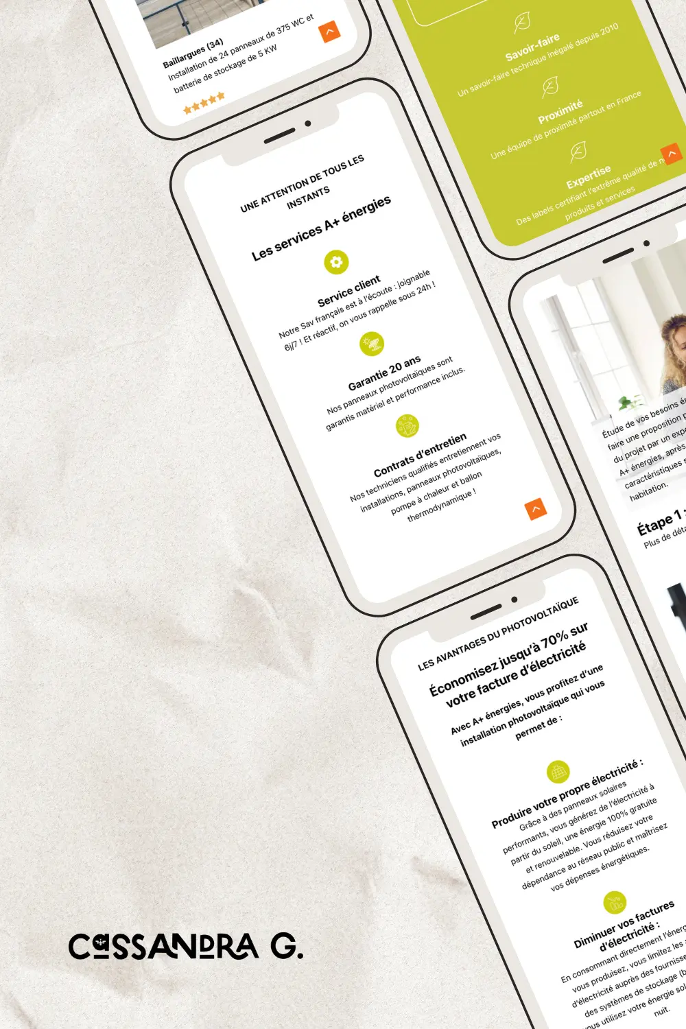 J’ai eu le plaisir d’accompagner A+ Énergies dans la refonte de leur site internet, un projet aussi stimulant qu’enrichissant. L’objectif était de moderniser l’image de l’entreprise tout en rendant le site plus clair, mieux structuré et agréable à parcourir, aussi bien pour les visiteurs que pour l’équipe en interne.